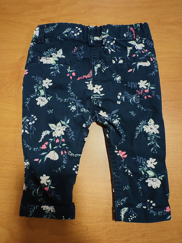 Pantalon bleu foncé fleuri en 6 mois