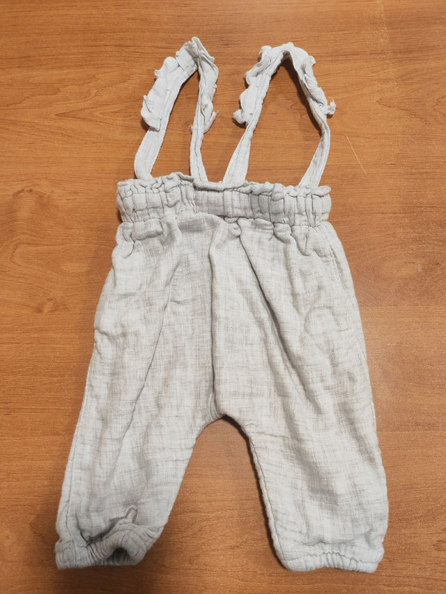Pantalon gris à bretelles en 3 mois