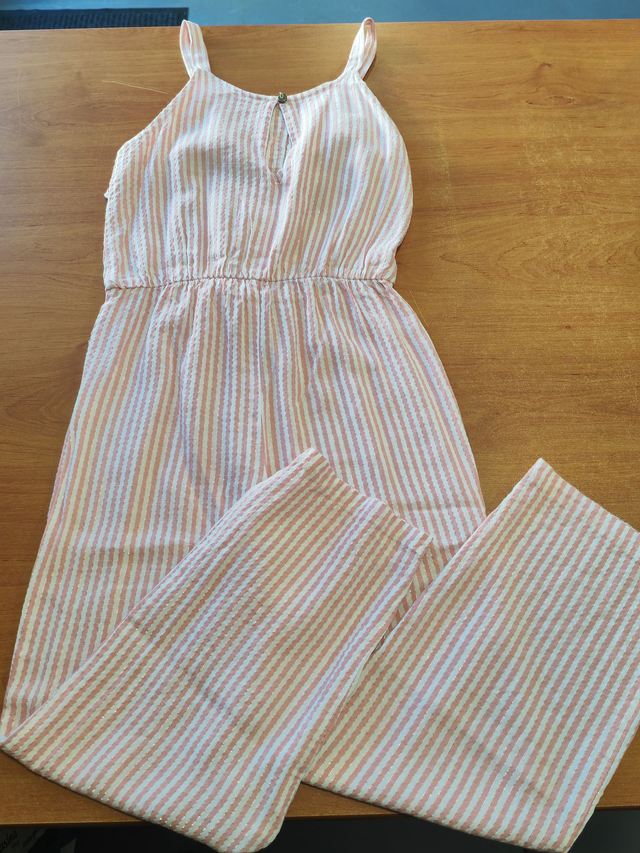 Salopette rayée rose en 10 ans